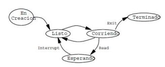 - En espera (WAIT): El proceso se encuentra detenido temporalmente mientras espera la llegada de ciertos eventos, como la lectura de datos desde el disco, un mensaje de otro proceso, la finalización de un tiempo de espera, o la conclusión de otro proceso