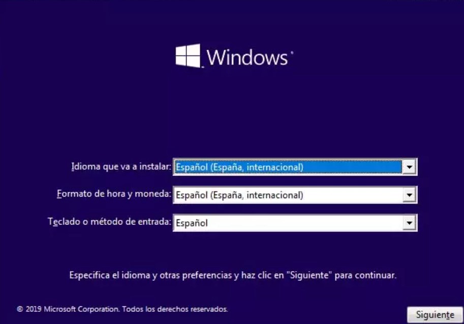 Al encender el equipo con el medio de instalación, se iniciará el instalador de Windows.