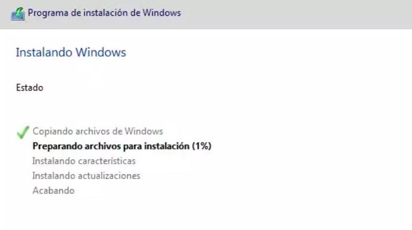 Seguir las instrucciones en pantalla para instalar los archivos de Windows.